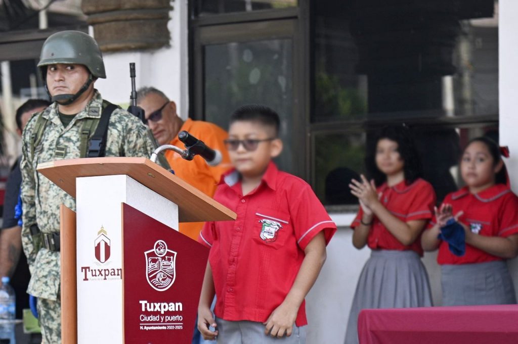 Tuxpan, Ver., 27 de mayo 2024.- Esta mañana se realizó el lunes cívico en el marco de la conmemoración del Día de la Marina Nacional, que se celebrara el próximo 1º de junio.