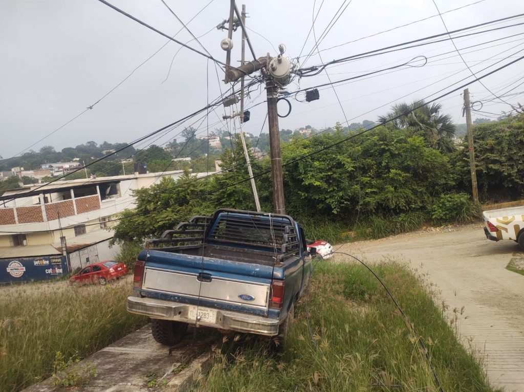 Mencionando que el VEHÍCULO SE ENCONTRABA ESTACIONADO Y BOTO LA VELOCIDAD DESPLAZANDOSE EN UNA pendiente IMPACTANDOSE CONTRA CABLE DE RETENIDA LO QUE PROVOCO TRONARA EL POSTE DE CONCRETO PROPIEDAD DE LA CFE.