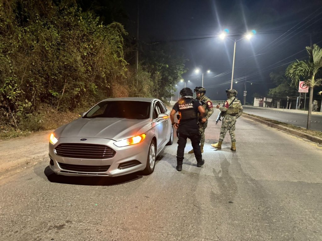 Mediante revisiones y puestos de control a vehículos particulares y del servicio público, elementos de SEDENA, SEMAR, Policía Municipal y SSP buscan evitar situaciones que puedan poner en riesgo a la población.