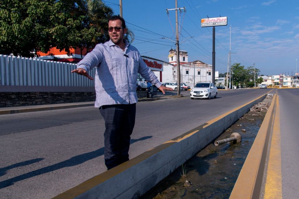 El alcalde, Dr. Jesús Fomperoza Torres, y el director de obras públicas, Ing. Pedro de Jesús Espinoza, realizaron un recorrido de supervisión de las obras que se están llevando a cabo en el bulevar, del puente Tenechaco a Liverpool.