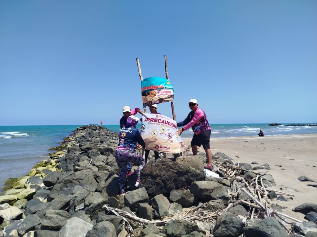 Cabe mencionar, que este mismo día quedaron debidamente instalados los puestos de auxilio y apoyo a los bañistas y turistas en Barra Norte, Playa Mis Amores, Playa Martita y Barra Galindo.