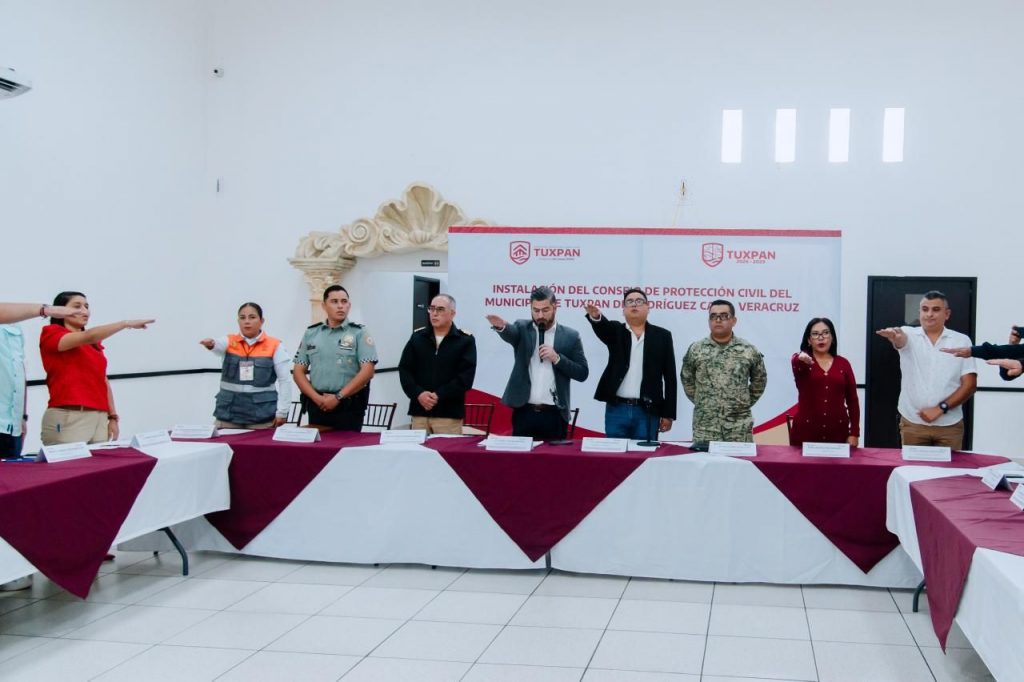 Este día se llevó a cabo la toma de protesta de las y los integrantes del Consejo de Protección Civil de Tuxpan, quedando formalmente instalado este órgano fundamental para la prevención, coordinación y atención de riesgos y desastres.