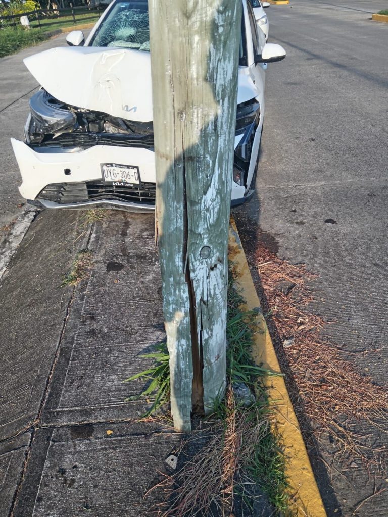 Alrededor de las 07:15 horas esto sobre el boulevard Lázaro Cárdenas de la carretera a la barra de la colonia la barra en Tuxpan Veracruz en este lugar el ciudadano Alejandro «N» de 28 años de edad y con domicilio en calle a la termoeléctrica Tuxpan de la colonia Enrique Rodríguez Alcaine el cual conducía un Kia tipo K3 de color blanco placas UYG306D del Estado de San Luis Potosí al transitar por el boulevard Lázaro Cárdenas pierde de un momento a otro el control e impacta a un objeto fijo en este caso a un poste de madera propiedad de la empresa telefónica TELMEX donde afortunadamente no hubo lesionado alguno tras el impacto, sin embargo recuerden agarrar el volantes sin llevar bebidas alcohólicas porque pudo ser fatal este accidente