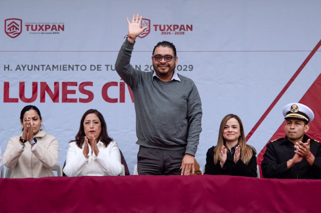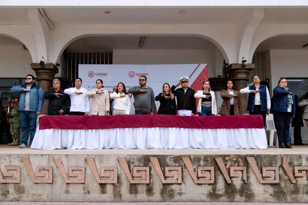 Este lunes se llevó a cabo el primer Lunes Cívico con honores a la bandera nacional del Gobierno Municipal de Tuxpan, correspondiente al periodo 2026–2029, como parte de las acciones encaminadas a fortalecer la identidad nacional y los valores cívicos entre la ciudadanía.