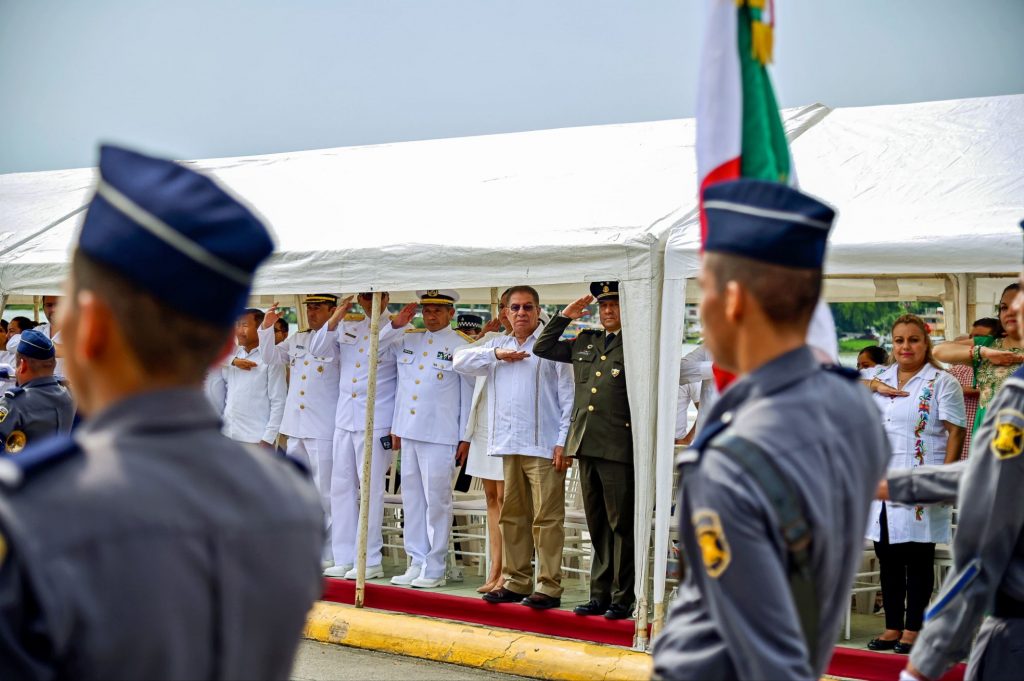 El contraalmirante C.G. DEM Luis Lázaro Cornejo Olivares, jefe del Estado Mayor de la Fuerza Naval del Golfo; la síndica única Mtra. Beatriz Piña Vergara; el vicealmirante Nicodemus Villagómez Broca, director general de ASIPONATUX; el capitán de navío C.G. IM DEM Miguel Ángel Núñez Ríos, Capitán de Puerto; el Prof. Onésimo Pérez Ramos, delegado regional de la SEV en Tuxpan; el Prof. Luis Demetrio López Marín, regidor comisionado en Educación y Actos Cívicos.