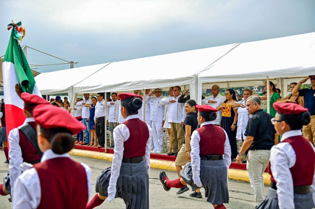 En el presídium, ubicado en la planta baja de presidencia municipal, estuvo el alcalde José Manuel Pozos Castro acompañado de autoridades militares, navales, civiles y municipales.