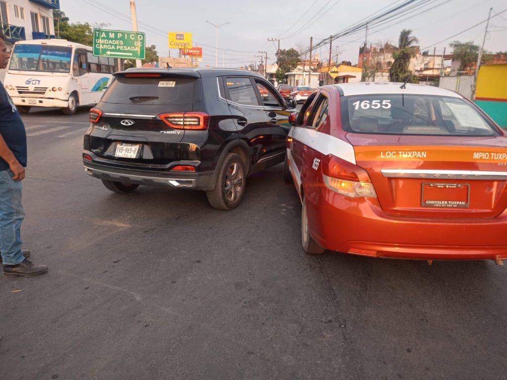 Transcurrían las 18:35 hrs sobre la Avenida Cuauhtémoc a la altura de la calle Manuel Ávila Camacho de la colonia del Valle en Tuxpan Veracruz, la ciudadana Gloria Angélica «N» de 36 años de edad con domicilio en calle segunda de General Silva en la congregación de Santiago de la peña conducía un vehículo de la marca chirrey tipo Tigo color negro modelo 2024 placas del estado de Veracruz # YVB965B misma que al invadir circulación preferente impacta a un vehículo Dodge tipo attitud colores oficiales blanco con rojo modelo 2017 sin placas de servicio taxi económico # 1655 conducido por el ciudadano Santiago «N» de 35 años de edad que vive en calle bachilleres de la comunidad de Tierra Blanca Tuxpan Veracruz. Afortunadamente no sé reporta ningún lesionado solamente daños materiales.