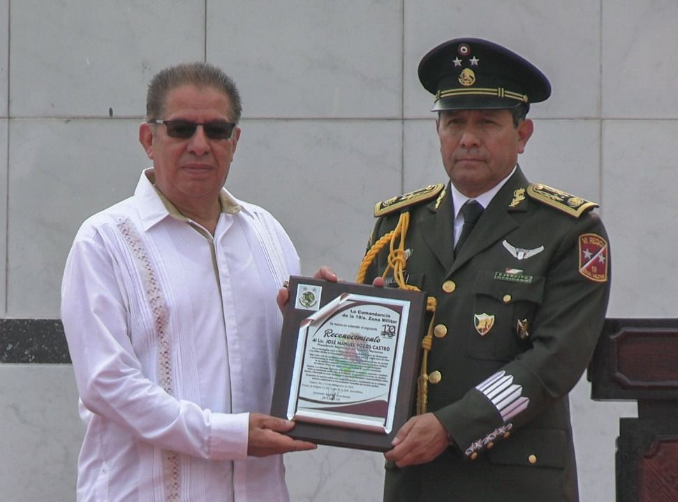 Durante el acto, el General de Brigada DEM Gonzalo Aguilar Escobedo, comandante de la 19ª Zona Militar, hizo entrega reconocimiento al alcalde José Manuel Pozos Castro, por haber llevado a cabo la restauración integral del Monumento a los Niños Héroes: