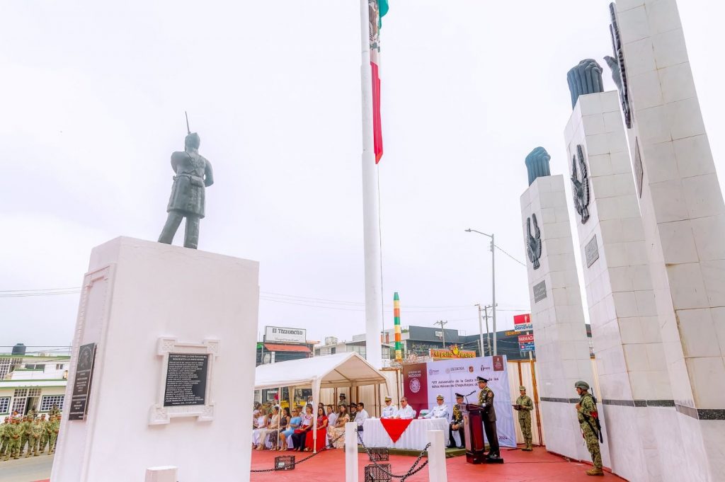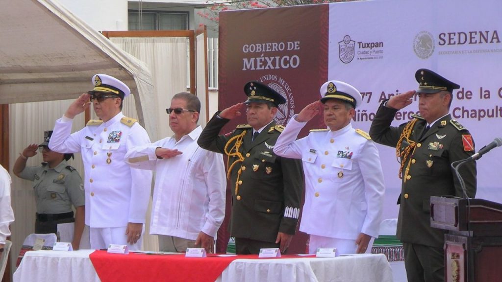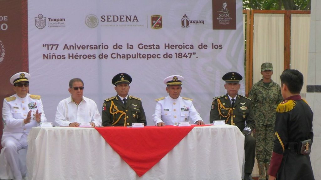 La ceremonia, que se realizó en el Monumento a los Niños Héroes, estuvo encabezada por el General de Brigada DEM Gonzalo Aguilar Escobedo, comandante de la 19ª Zona Militar; Lic. José Manuel Pozos Castro, presidente municipal de Tuxpan; Vicealmirante CG DEM Miguel Ángel García Portillo, comandante de la 5ª Zona Naval.