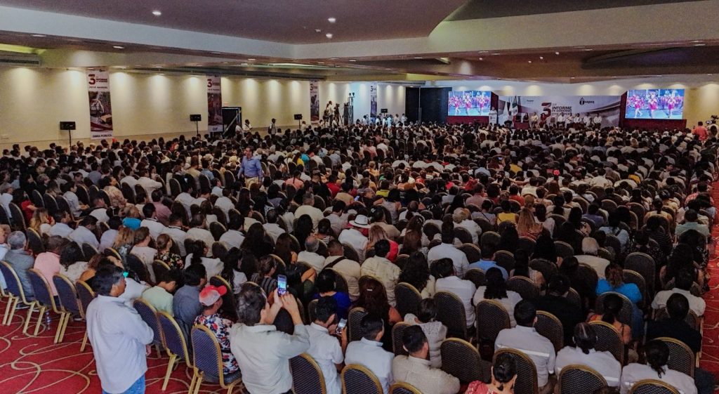 El acto protocolario se realizó en el Centro de Convenciones del Hotel Holiday Inn, luego de que en sesión ordinaria de cabildo el cuerpo edilicio autorizó este espacio como recinto alterno para la Sesión Solemne.
