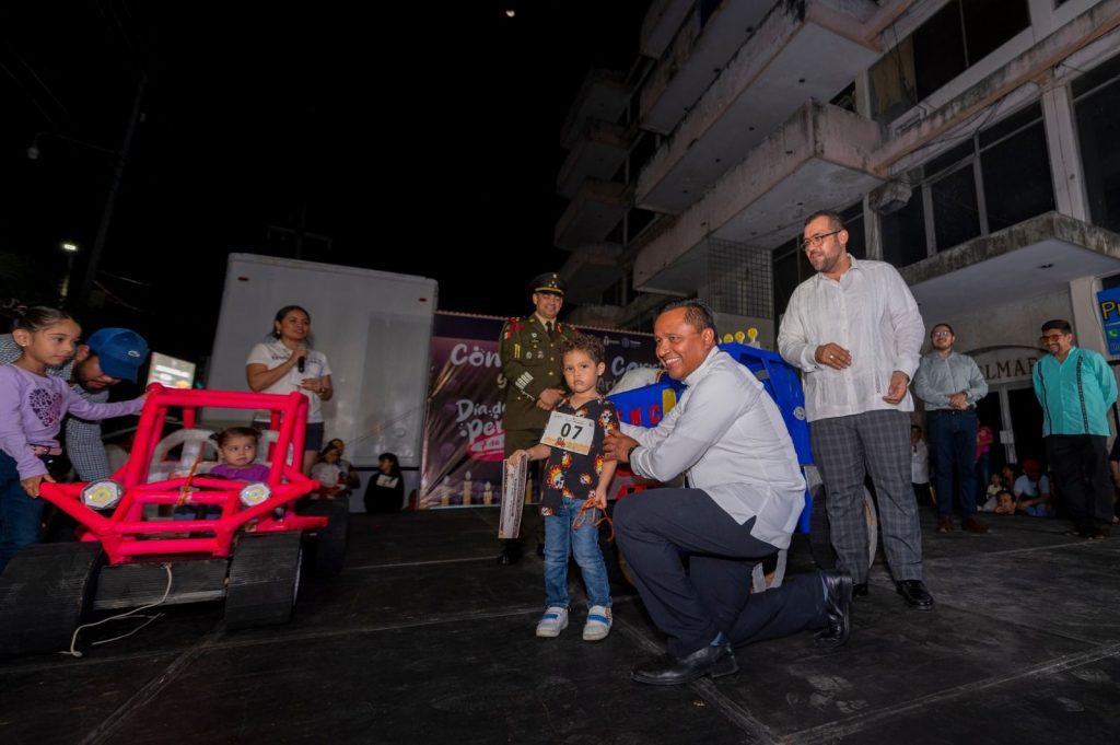 Posteriormente, las autoridades encabezaron el desfile en el que cientos de niñas y niños, acompañados de sus familias, pasearon sus carritos por la Av. Juárez; dando paso al concurso de carritos que se llevó a cabo a un costado de la plaza cívica, donde las y los pequeños dieron muestra de su gran ingenio e imaginación.