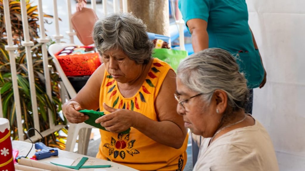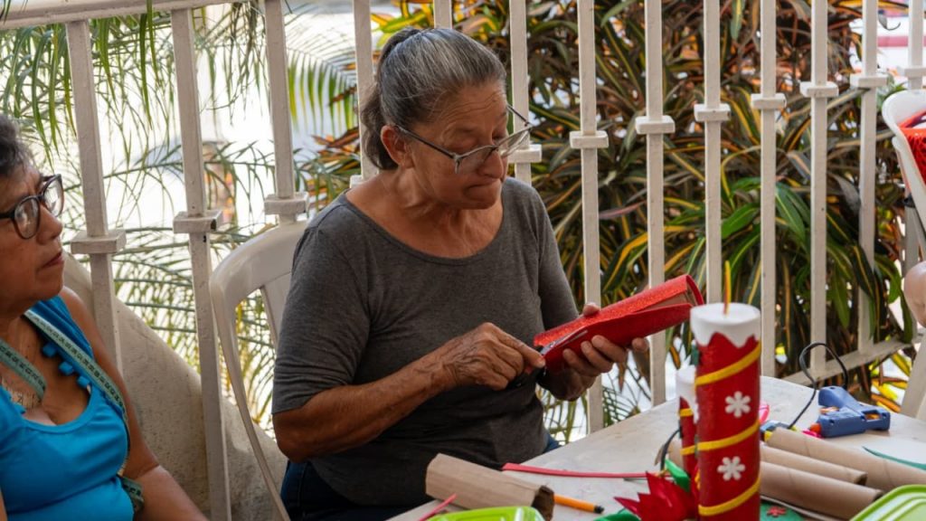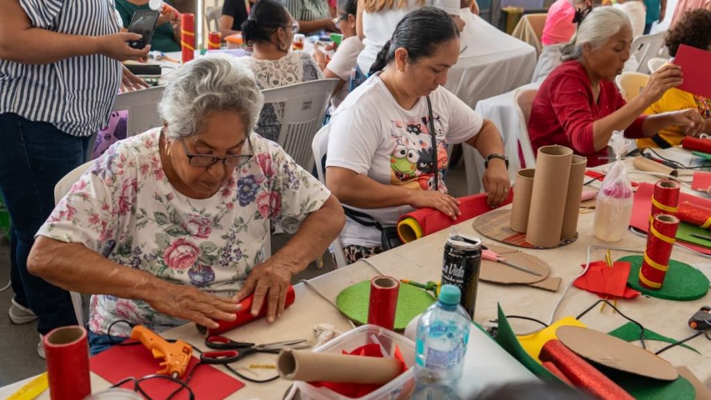 En lo que respecta al taller de manualidades de cartón y listón, las participantes empezaron a elaborar artículos relacionados con las fiestas navideñas.